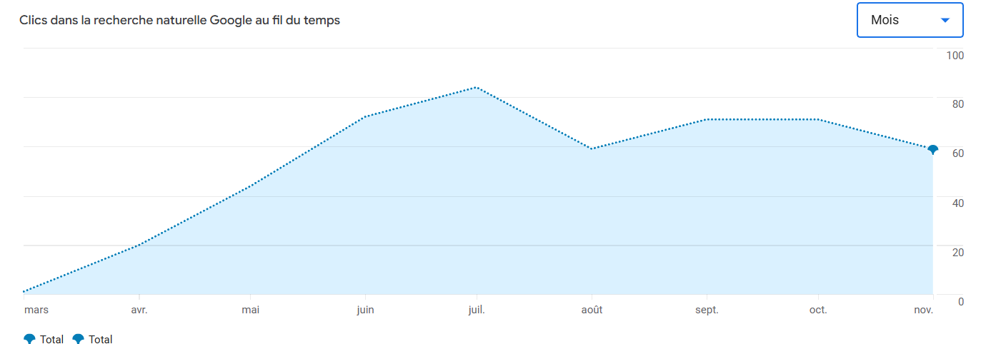 En 9 mois, le site est passé de quasi zéro trafic à un flux régulier de visiteurs qualifiés.